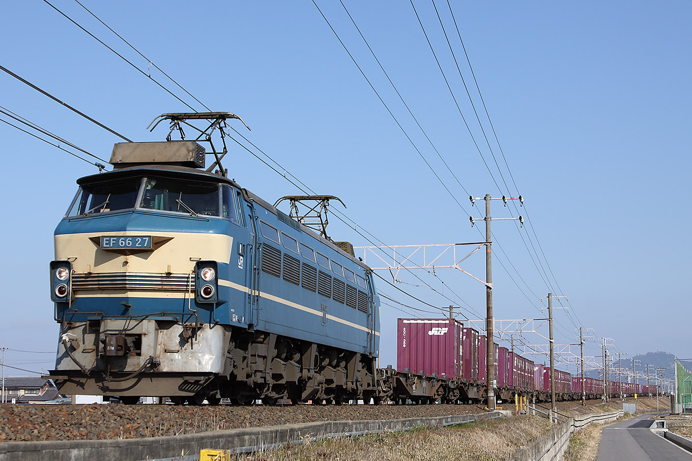 山陽本線の直線区間を力走するEF66 272010/1/5 竜野~相生間にて一面青空の下、東海道本線を力走するEF66 272009/2/6 岐阜~木曽川間にて長大編成を牽引し東海道本線を力走するEF66 272008/12/20 穂積~大...