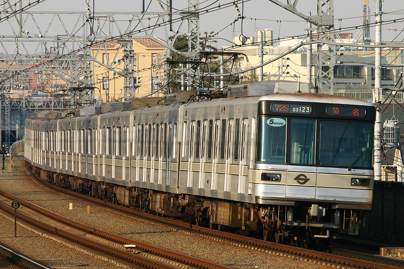夕日を受けながら東急東横線内をゆく営団03系2004/1/30 多摩川駅にて関連リンク