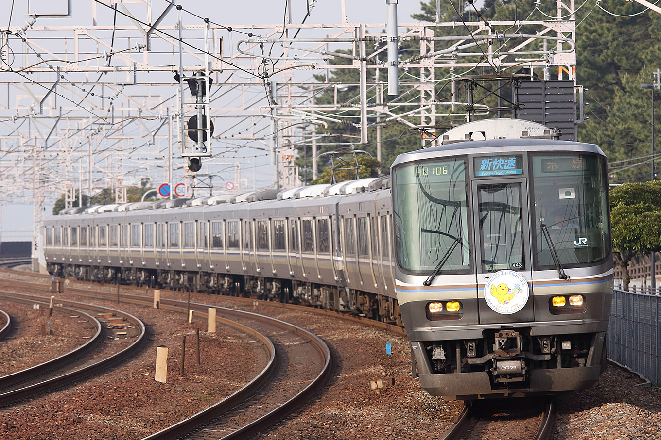 「あいたい兵庫デスティネーションキャンペーン」HMで活躍する223系V43編成2009/4/8 塩屋〜須磨間にて通勤時間帯のJR神戸線を快走する223系V43編成2006/8/5 甲南山手駅にてV編成同士の8両編成でJR神戸線をゆく新快速列...