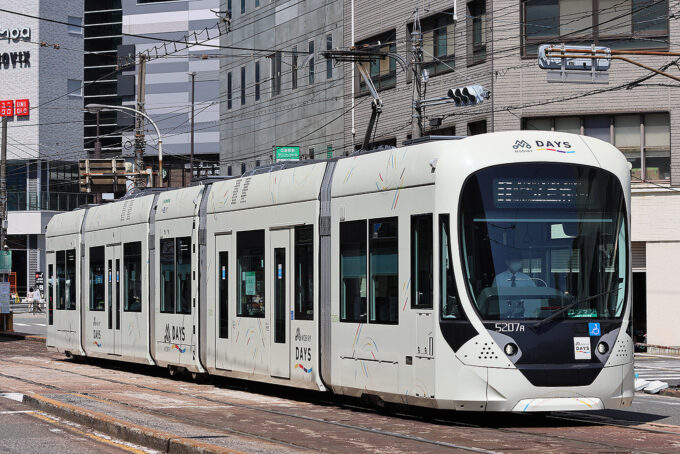 広島駅前の交差点で信号待ちをする5200形5207号