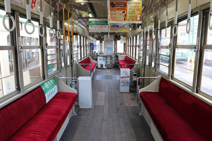 広島電鉄 750形762(3) 広島電鉄 X Facebook はてブ LINE コピー 2025/10/23 千田車庫で開催された「路面電車の日」記念撮影会 9枚とも 2024/6/16 千田車庫にて 撮影会で公開された762号の車内の様子 4枚とも 2024/6/16 千田車庫にて