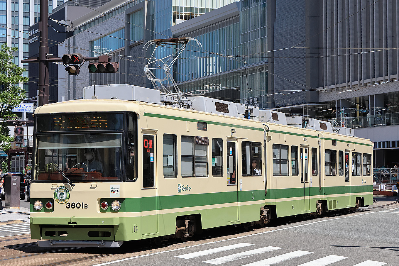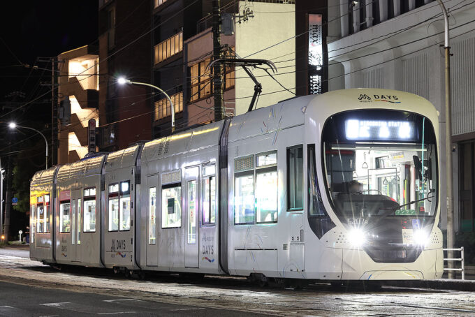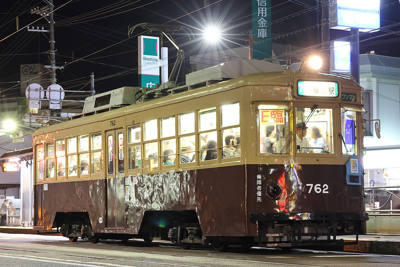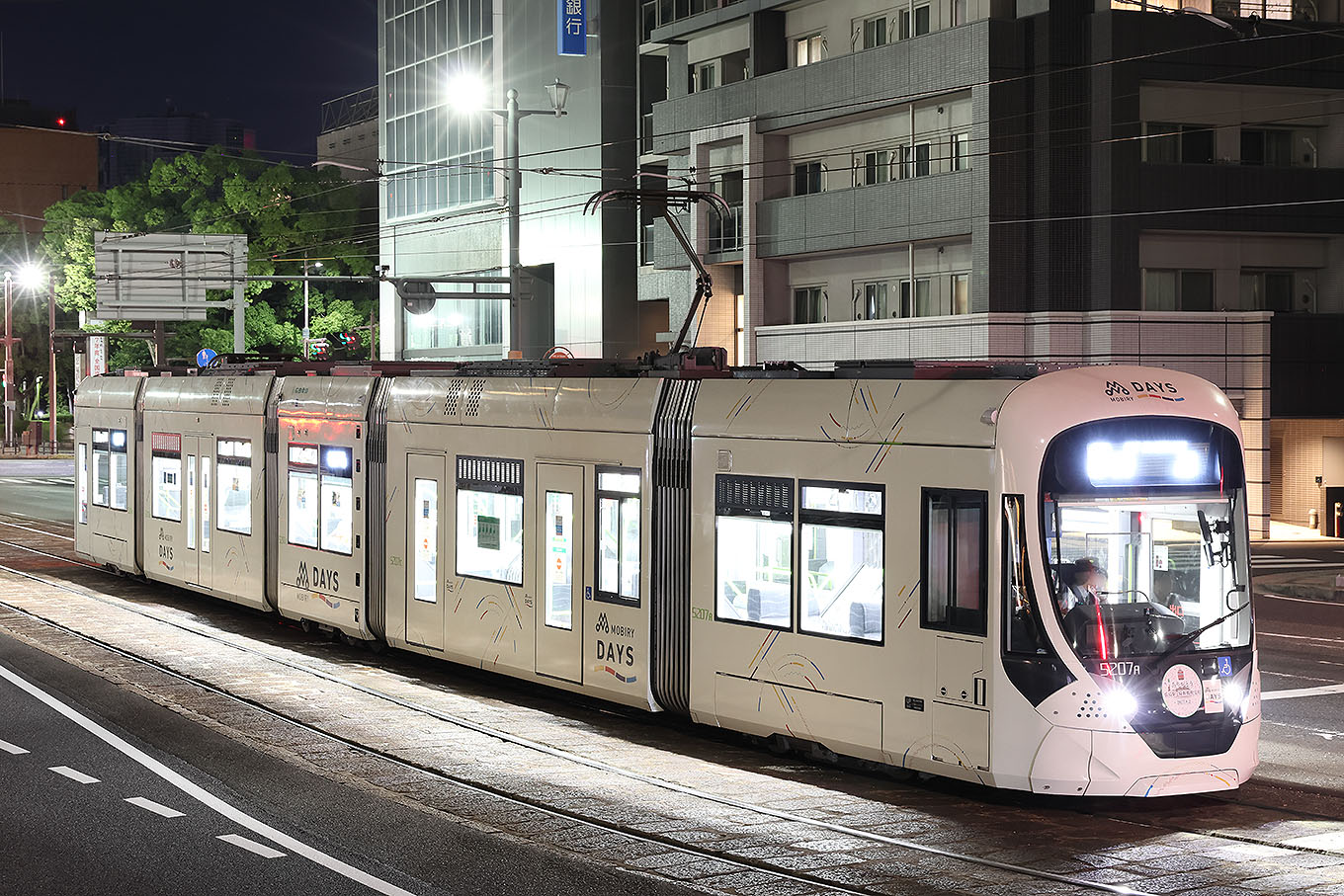 花火大会の夜、日付変わり0時過ぎに猿猴橋町に到着した5200形5207号